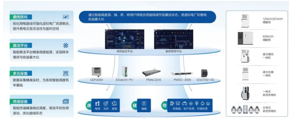 在“源”端,公司通过微电网控制器与一体化平台提升光伏等可再生能源发电效率;在“网”端,聚焦电网智能化升级,增强电网对多元电源与负荷的接纳能力;在“荷”侧,依托储能管理系统实现用能精准管控;在“储”环节,以工商储能产品与BMS系统为核心,提供峰谷套利等增值服务;在“售”电端,整合前序环节优势,积极参与虚拟电厂运营,探索新型售电模式。