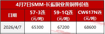 【SMM价格】2026年4月7日长振黄铜棒价格