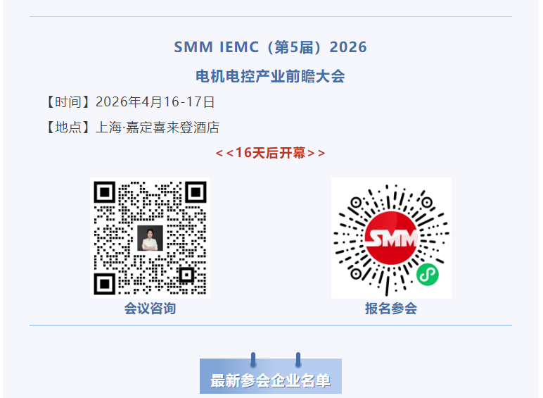 为促进产业链上下游精准对接与协同创新,SMM IEMC 2026(第五届)电机电控产业前瞻大会特设三大产业聚焦板块。本届大会为产业可持续高质量发展提供实质性助力。