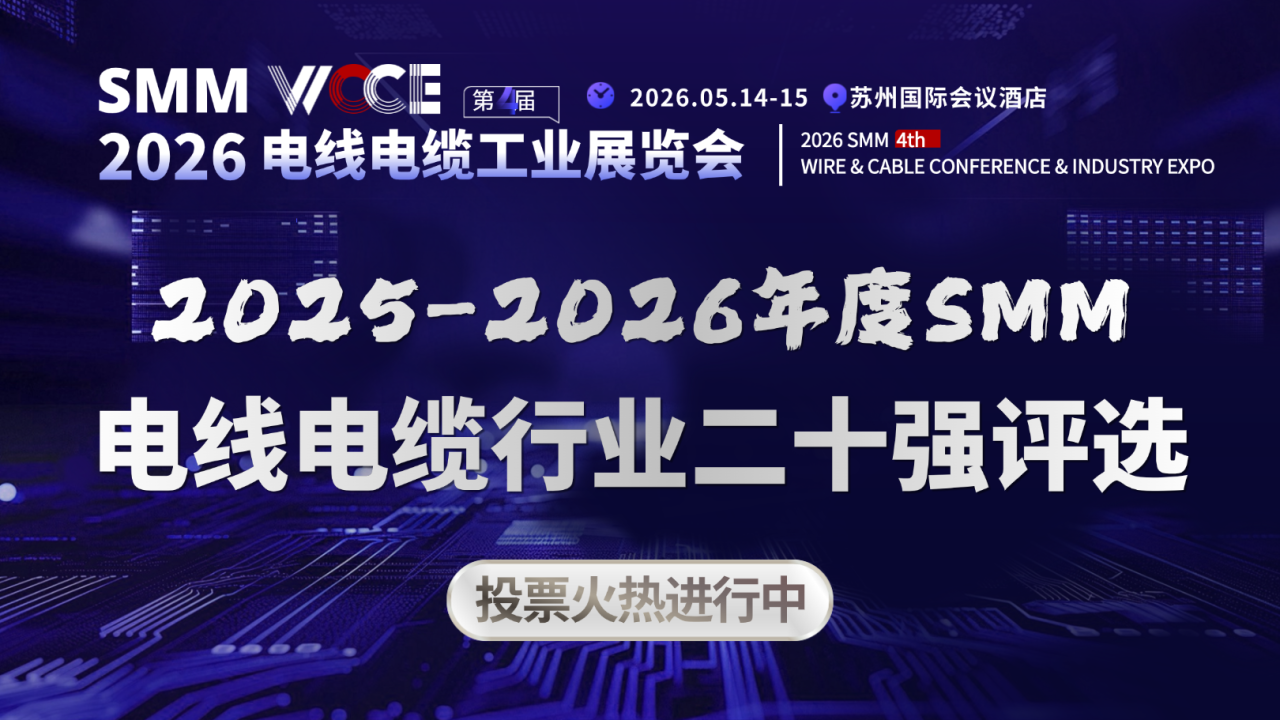 最终评选结果将于2026年5月14日在SMM WCCE 2026(第四届)电线电缆工业展览会暨产业发展大会(会议时间:2026年5月14-15日;会议地点:苏州国际会议酒店)现场公布,让我们共同期待行业新标杆的诞生!