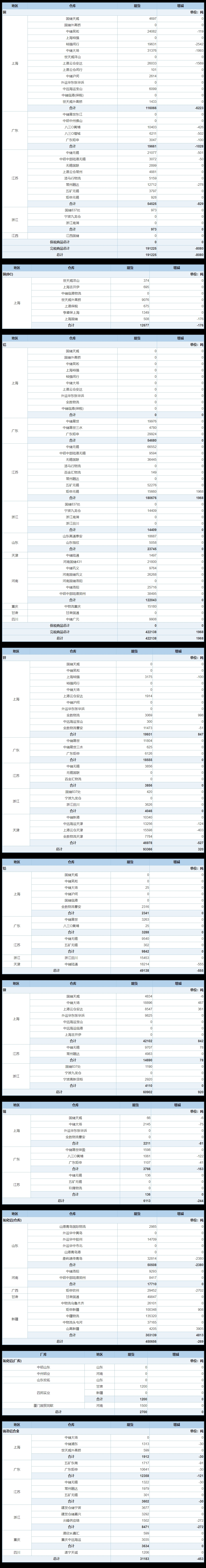 10月24日上海期货交易所金属库存日报