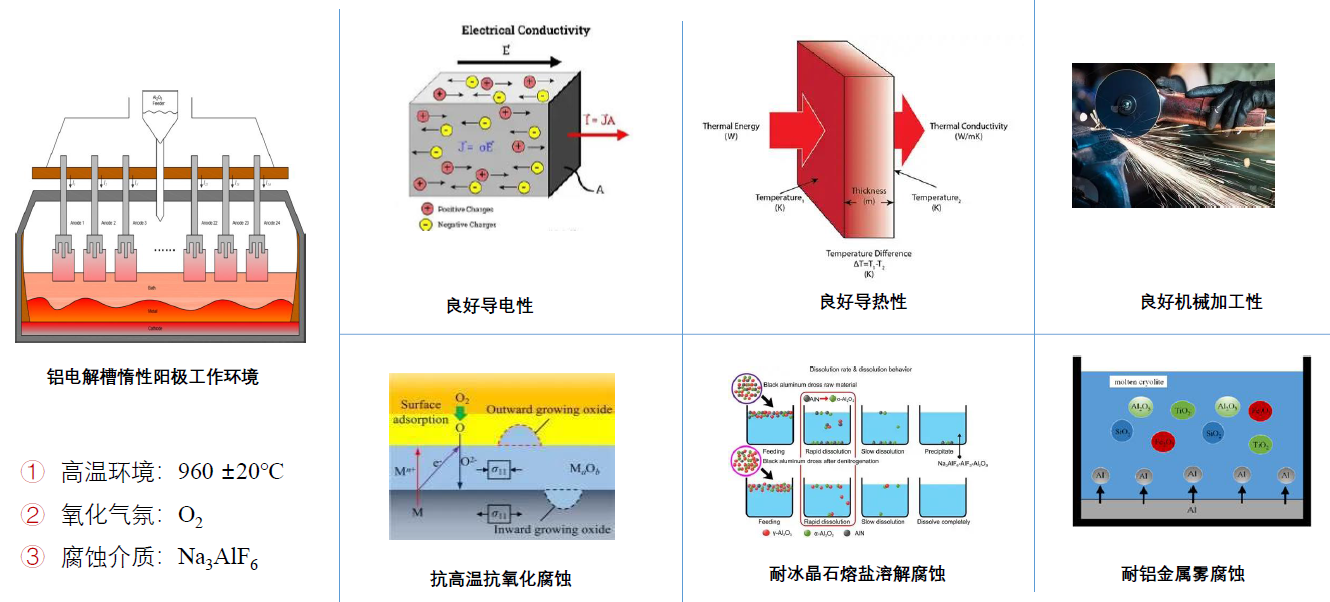 高端高附加值应用:传统碳素阳极会带入重金属、硅等杂质,影响铝的纯度。惰性阳极铝引入的杂质分配比大,可有效去除,可以直接生产出高纯度的铝,服务高端应用,提升产品附加值。