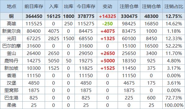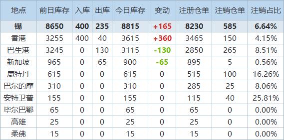 》查看更多金属库存信息