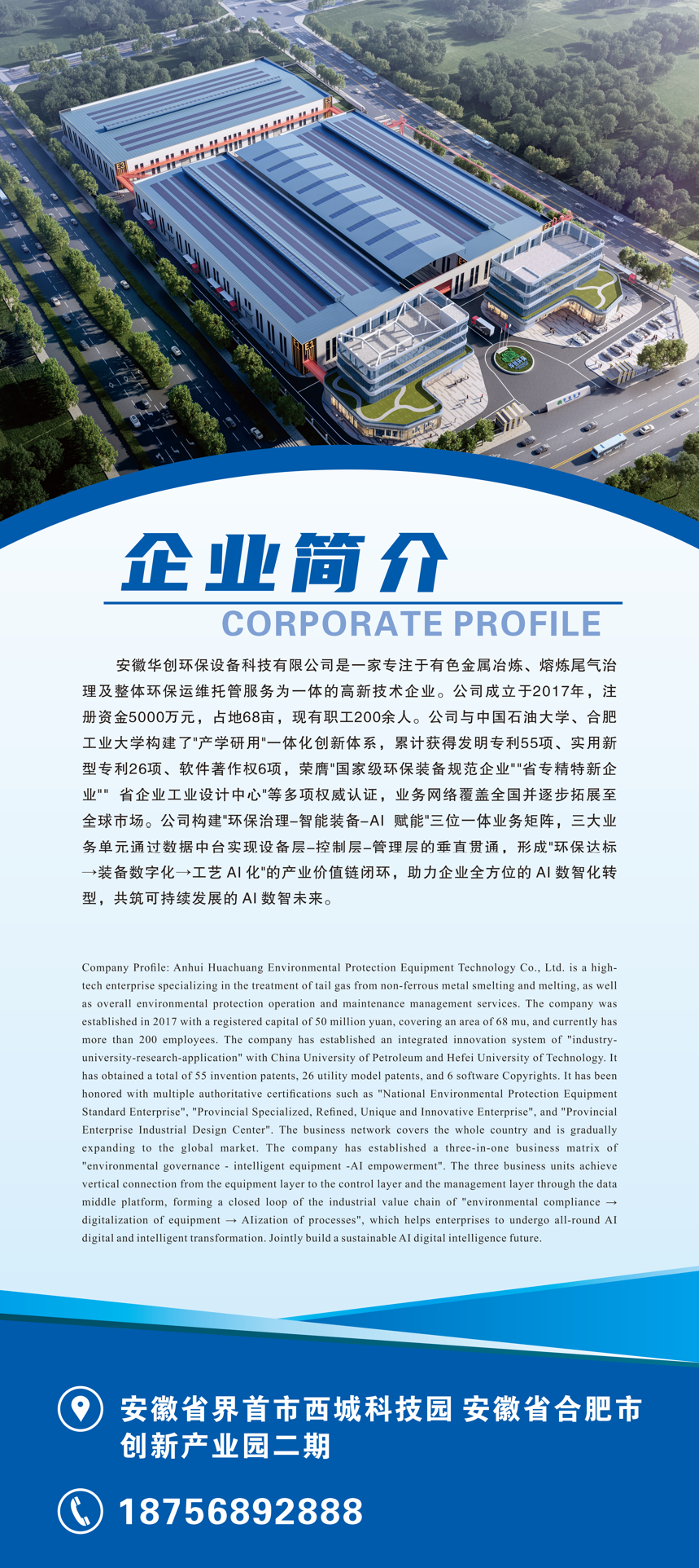 作为国家级环保装备规范条件企业的华创环保,自成立以来,始终秉承“诚信、创新、务实、卓效”的企业精神,坚持“诚信为本、品质为先、服务为王”的企业理念,以“成为有梦想、有担当的世界一流环保企业”为愿景,推动创新性研发以及绿色工业的发展。