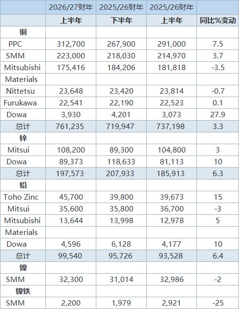 4月7日(周二),根据基于各大冶炼厂生产计划计算,日本2026/27财年上半年精炼铜产量预计将较上年同期增长3.3%,因铜合金产品和电力行业铜线需求坚挺推动。