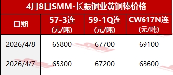 【SMM价格】2026年4月8日长振黄铜棒价格
