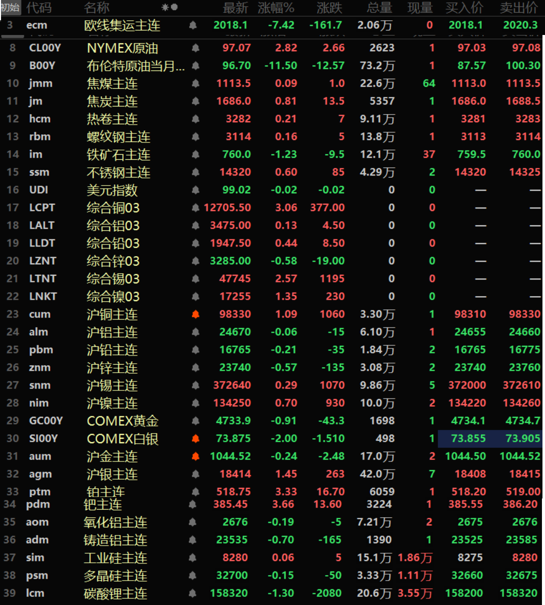 金属市场方面: