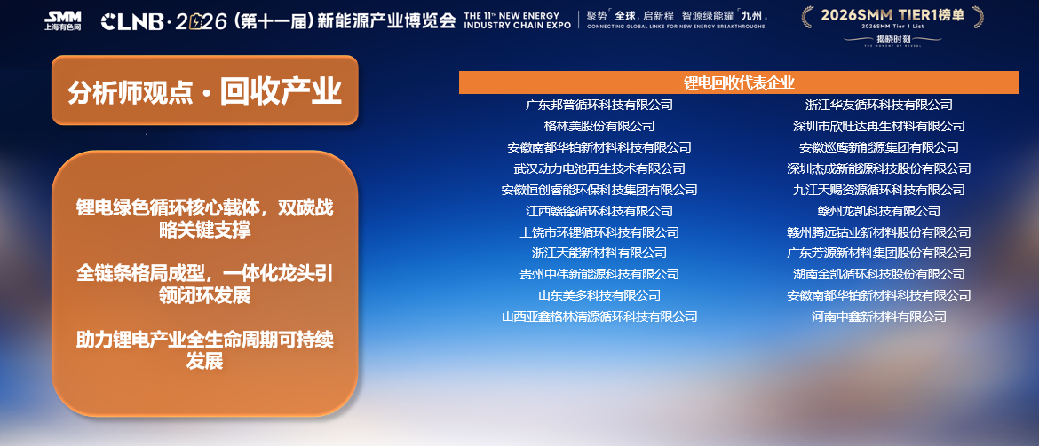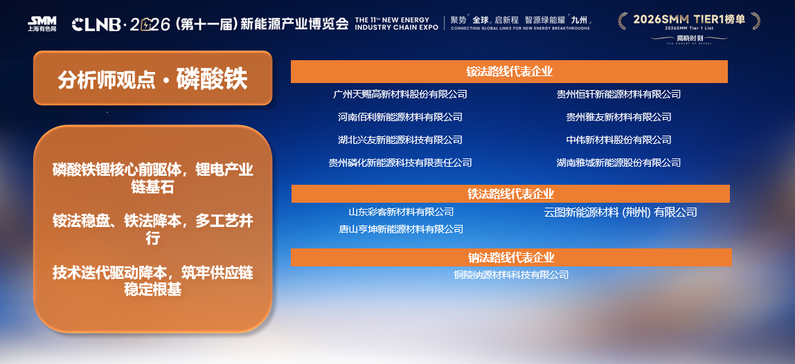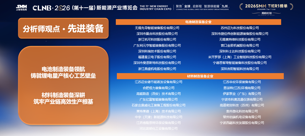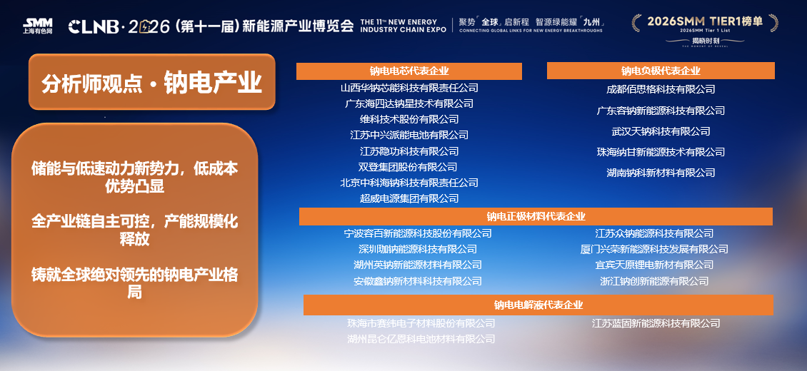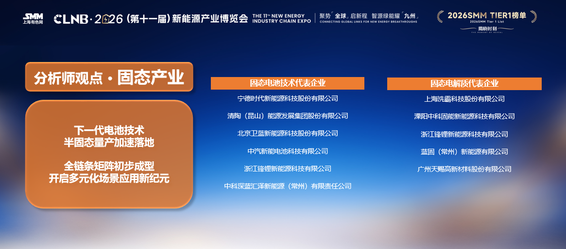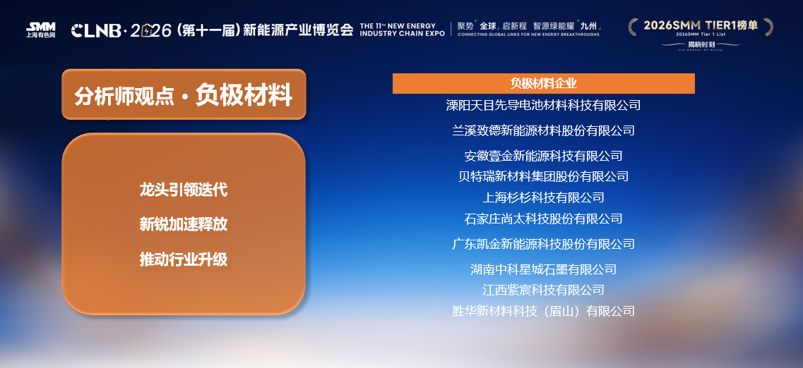 在由上海有色网信息科技股份有限公司(SMM)主办的2026 (第十一届)新能源产业博览会晚宴环节,2026年度SMM Tier1 榜单隆重揭晓!