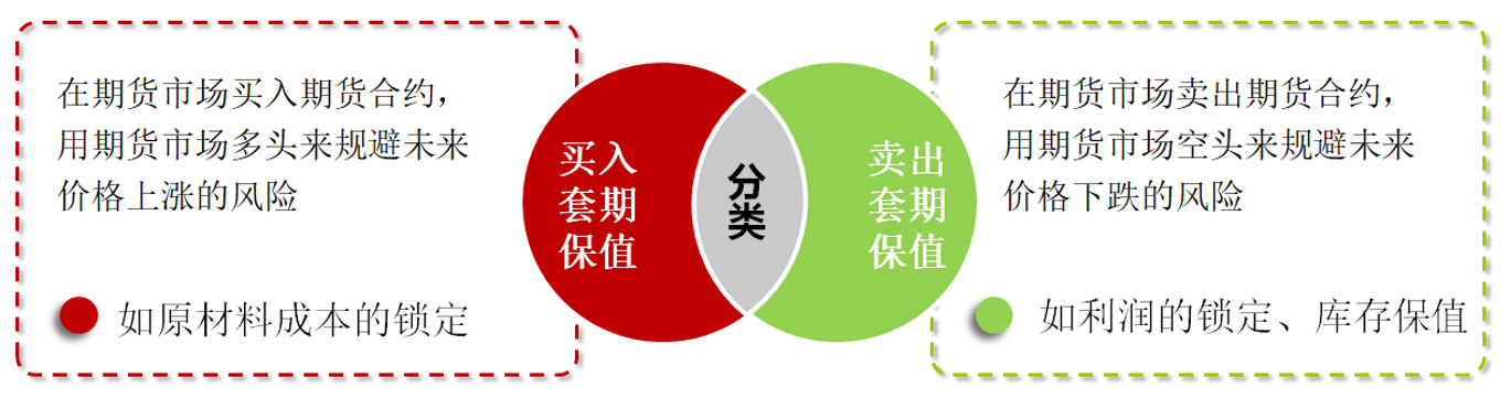 定义:企业在日常经营的过程中在面对原材料价格、产品价格等可能发生朝向自己不利的方向变动时,利用相应的期货工具对冲这种不利的风险,从而达到规避风险、稳定经营目的的一种行为。