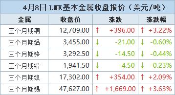 伦敦时间4月8日17:00(北京时间4月9日00:00),LME三个月期铜上涨396美元,或3.22%,收报每吨12,709.0美元;稍早一度上涨3.6%,触及3月18日以来最高水准12,755.50美元。受伊朗战争引发的经济担忧影响,铜价3月下跌7.6%。