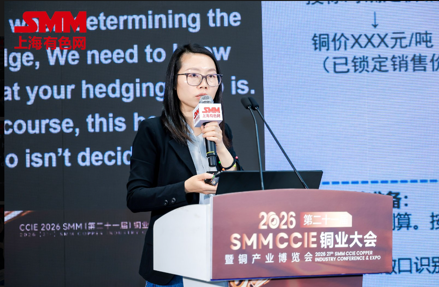 4月10日,在由上海有色网信息科技股份有限公司(SMM)、山东爱思信息科技有限公司、上海有色网金属交易中心有限公司主办,山东恒邦冶炼股份有限公司、Zambia Development Agency (ZDA)、中铝洛阳铜加工有限公司、和田商贸物流集团有限责任公司协办的2026 (第二十一届)SMM CCIE铜业大会暨铜产业博览会——铜产业与贸易金融论坛上,南华期货股份有限公司研究院高级总监傅小燕分享了“穿越周期:铜杆线缆企业的套保逻辑与制度建设”。