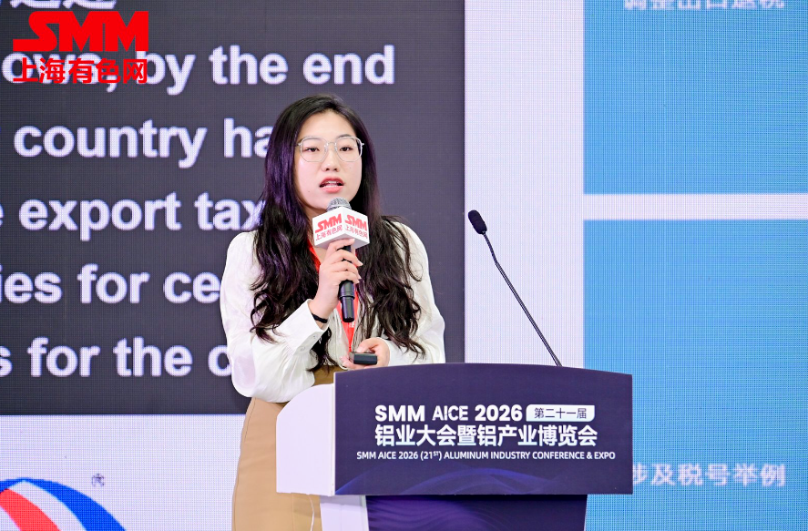 在由上海有色网信息科技股份有限公司(SMM)主办的SMM AICE 2026(第二十一届)铝业大会暨铝产业博览会-电解铝氧化铝冶炼论坛上,SMM铜铝品目行研高级经理 于少雪围绕“政策驱动下贸易模式转型与加工贸易实务创新”的话题展开分享。在提及铝材出口展望时她表示,即使客观存在地缘政治、欧盟CBAM碳关税、及反倾销税等不利因素,但经历了2025年的调整过渡之后,海外汽车、包装、机械等领域均存在一定需求增长点,结合一般贸易出口窗口期,2026年铝材出口总量将小幅回暖。铜材出口方面,SMM预计2026年中国铜材出口将维持中高速增长,同比增长至92万吨左右,增速4.8%。结构上高端铜箔、铜板带、特种铜材增速更快;主市场为东南亚、韩国、欧盟、墨西哥等。