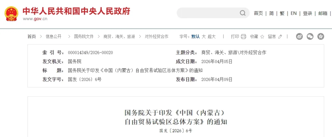 国务院关于印发《中国(内蒙古)自由贸易试验区总体方案》的通知