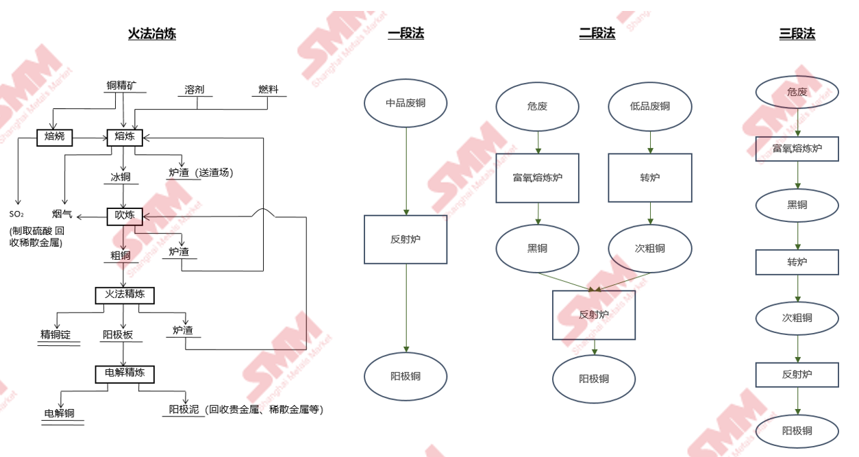国内废铜冶炼主要以一段法和二段法为主