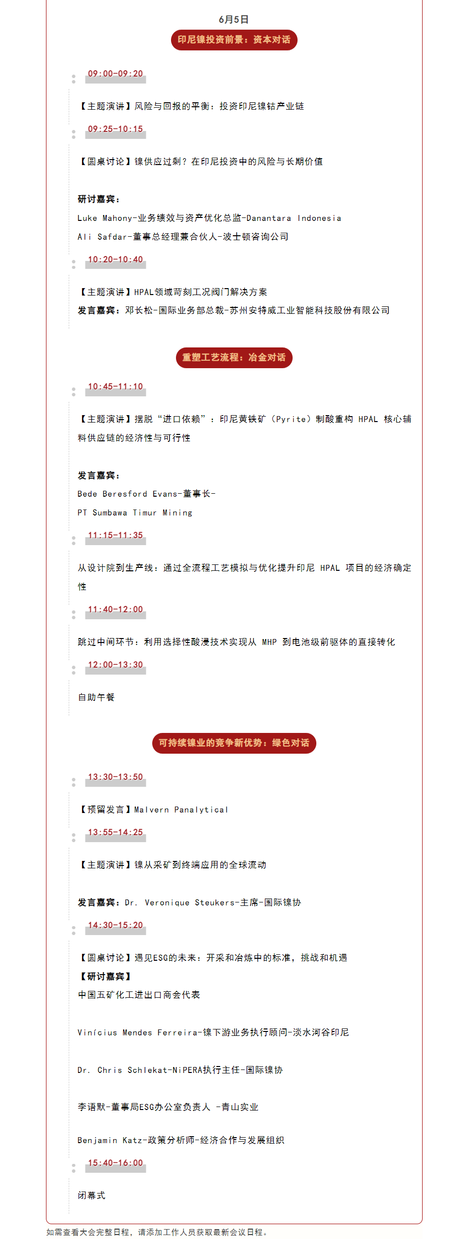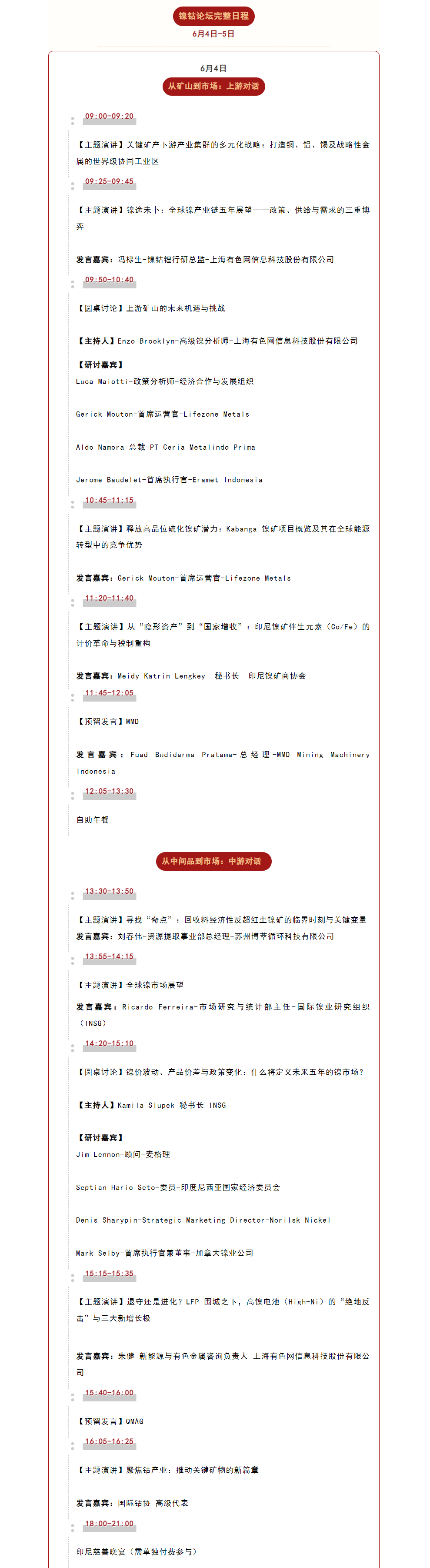 ► 6月4日:镍钴 / 铝 / 煤炭与能源转型 三大会场、高级慈善晚宴(需单独付费参与)