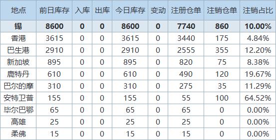 》查看更多金属库存信息