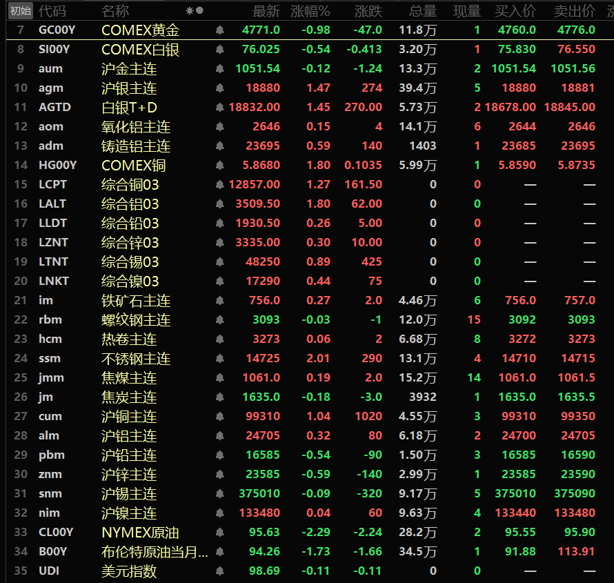金属市场方面: