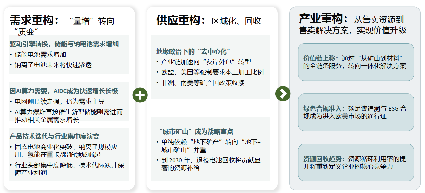 市场在经历补贴红利引发的“脉冲式震荡”后进入稳态。2021-2022年的缺口刺激了全球资源项目密集投产;2023-2025年随盐湖与辉石集中释放,供应增速反超需求,推动结构逆转并进入累库阶段;长期来看,储能爆发将有效消化过剩,驱动市场回归紧平衡。