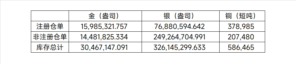 2026年4月10日COMEX金属库存