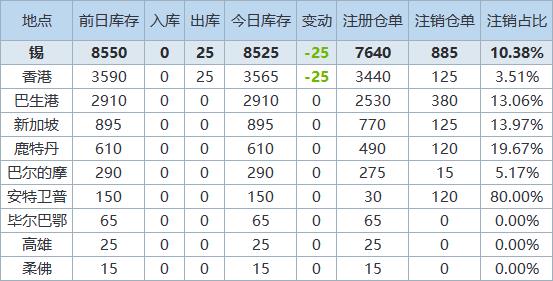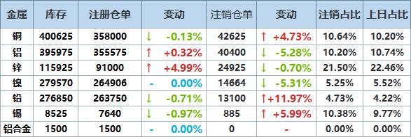 》查看更多金属库存信息