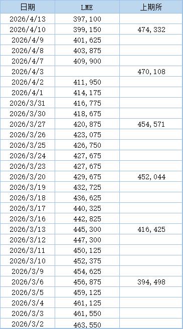 上期所公布的数据显示,4月10日当周,沪铝库存继续回升,周度库存增加0.9%至474,332吨,增至近六年来新高。