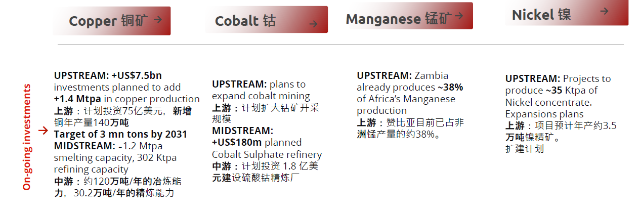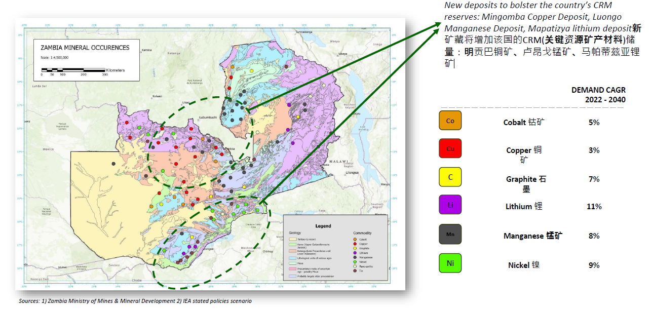 赞比亚:占全球铜供应量的5%,拥有非洲最大的镍矿和占非洲锰产量的38%。