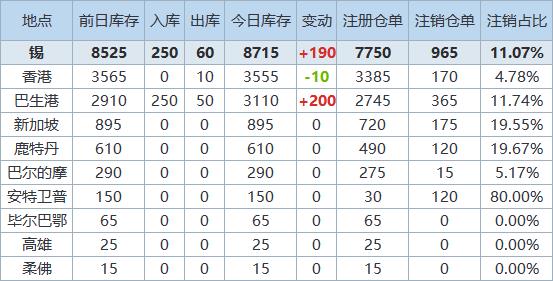 》查看更多金属库存信息