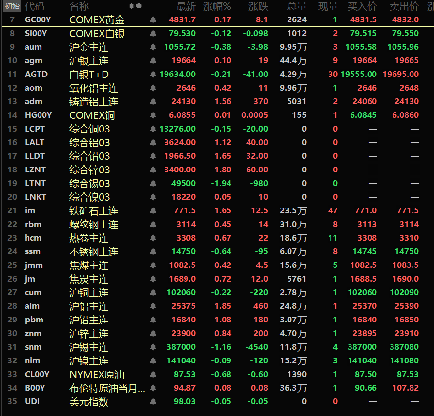 金属市场方面: