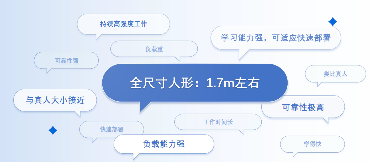 其介绍了小尺寸人形:0.8m以下,安全隐私,噪音低,动作柔和、噪音低,多模态支持,严格加密家中数据,避免信息泄露,重量轻,高防护设计,软质外壳,尺寸小,多模态交互,支持语音、手势、触摸控制,防护设计,重量轻、尺寸不太大等内容。