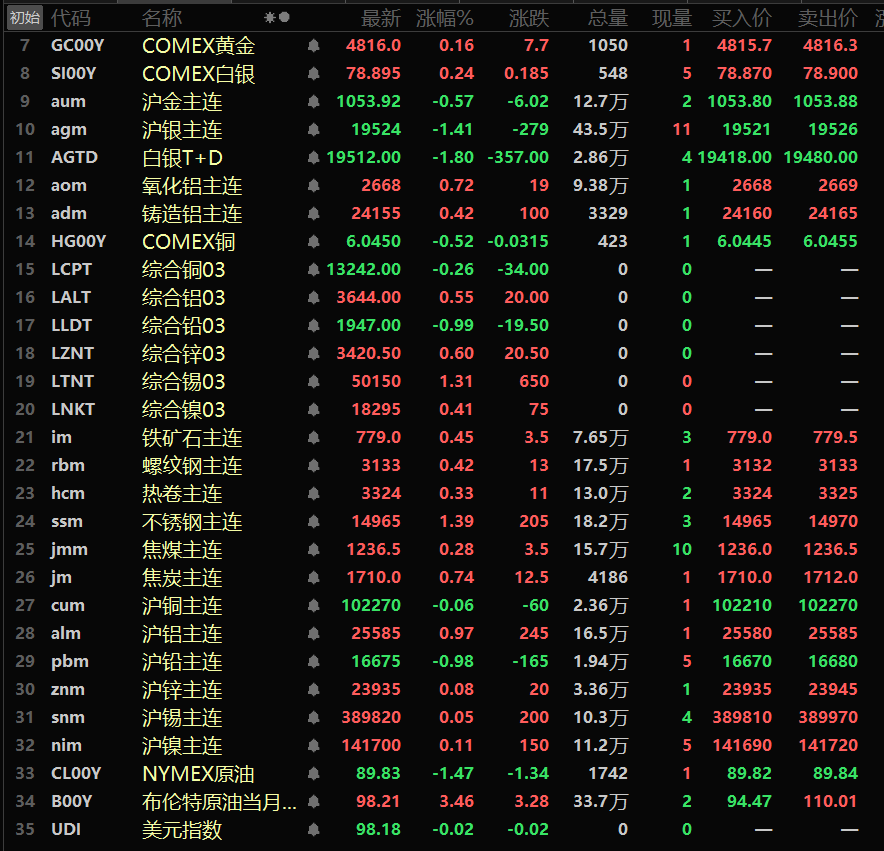 隔夜内盘基本金属普涨。沪铜跌0.06%。沪铝涨0.97%,沪铅跌0.98%。沪锌涨0.08%。沪锡涨0.05%。沪镍涨0.11%。此外,氧化铝主力期货涨0.42%,铸造铝主连涨0.72%。