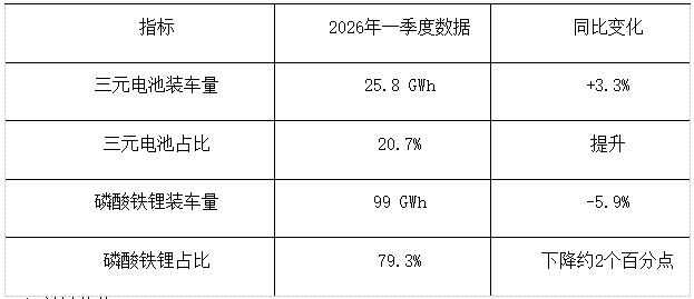 能量密度升级:一季度电池能量密度160 Wh/kg以上车型占比13%,较2025年的9%明显回升,反映三元高端需求回暖。