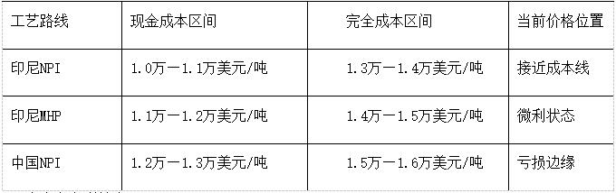 湿法冶炼(MHP):生产成本累计上调约2360美元/金属吨(含14%税率影响)