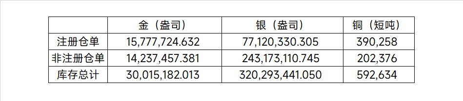 2026年4月15日COMEX金属库存