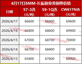 【SMM价格】2026年4月17日长振黄铜棒价格
