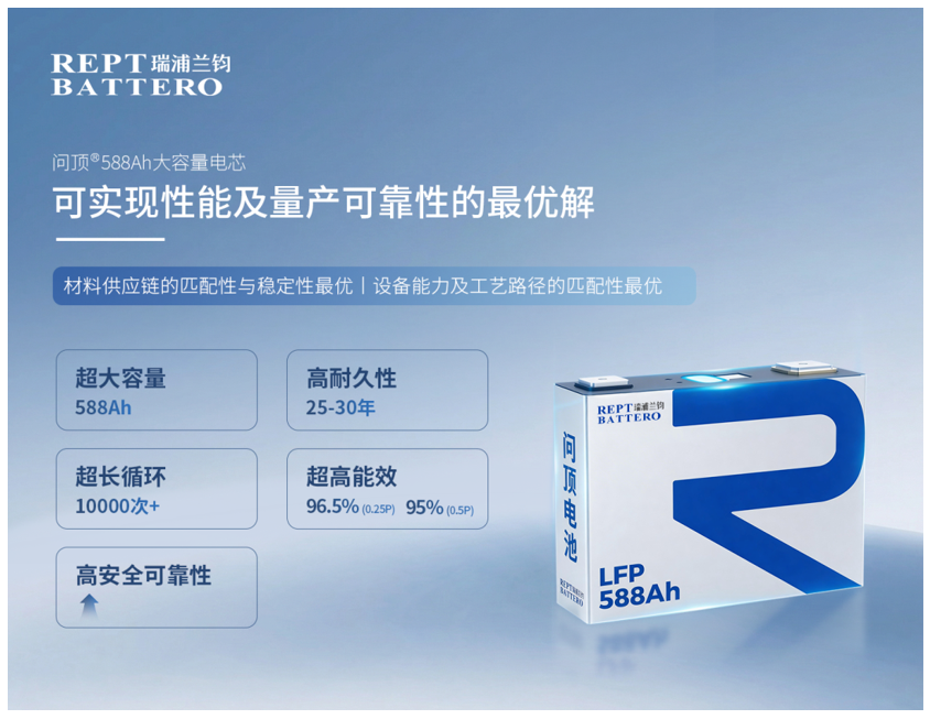 2026年,锂电池储能将完成从政策驱动到市场主导的历史性跨越,成为全球能源转型不可或缺的核心支柱。在此背景下,瑞浦兰钧问顶® 588Ah电芯实现了性能及量产可靠性的最优解。