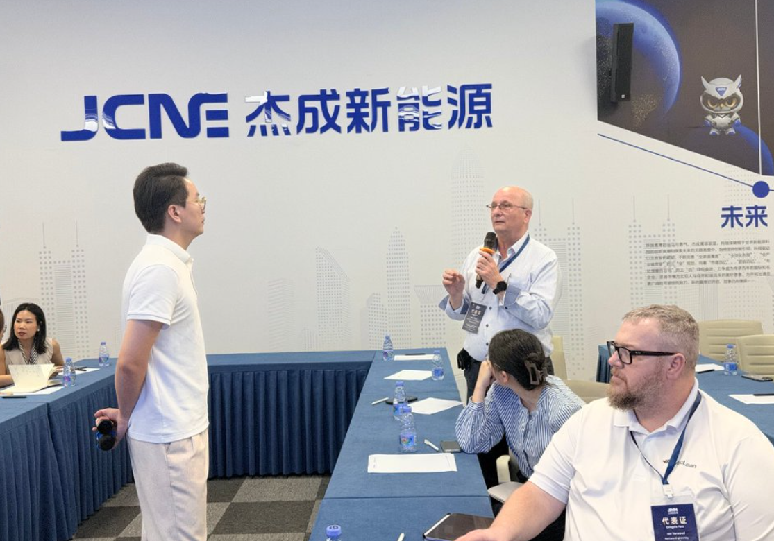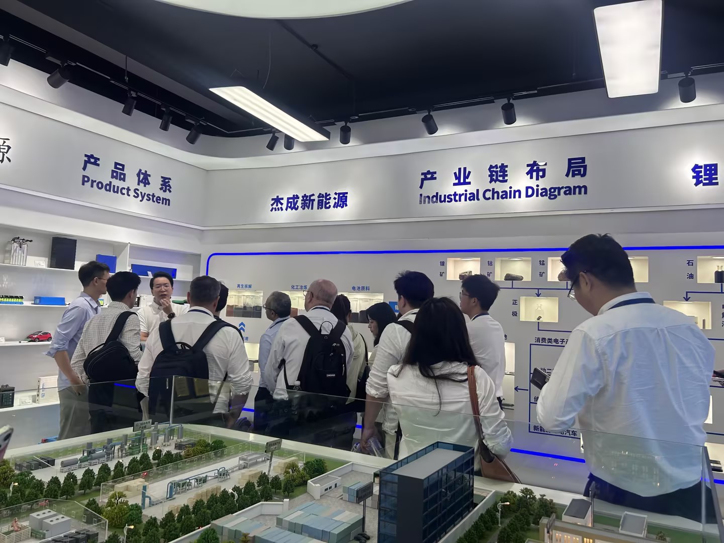 在参观交流过程中,杰成新能源向考察团详细介绍了其在电池回收技术、资源化利用、产能布局及ESG实践等方面的进展。双方围绕行业趋势、政策导向、商业模式与合作机会等展开了深入探讨。