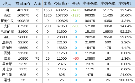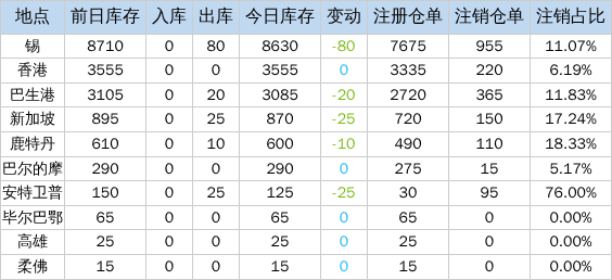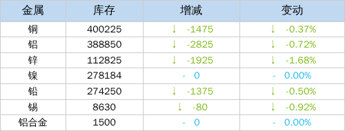 》查看更多金属库存信息