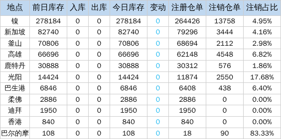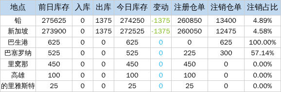 4月16日LME金属库存及注销仓单数据