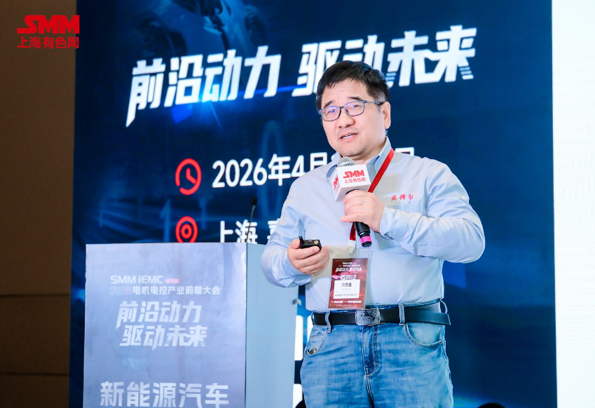 4月17日,在由上海有色网信息科技股份有限公司(SMM)、山东爱思信息科技有限公司主办,上汽集团创新研究开发总院、上海汽车集团金控管理有限公司、东莞市鑫华翼自动化科技有限公司协办,上海嘉朗实业有限公司、泰科电子有限公司、赣州市稀土新材料及应用集群、宁波招宝磁业股份有限公司支持的SMM IEMC 2026(第五届)电机电控产业前瞻大会——新能源汽车产业论坛上,珠海英搏尔电气股份有限公司技术总工程师刘宏鑫对“电驱系统的性能边界突破与集成创新趋势”进行了分享。