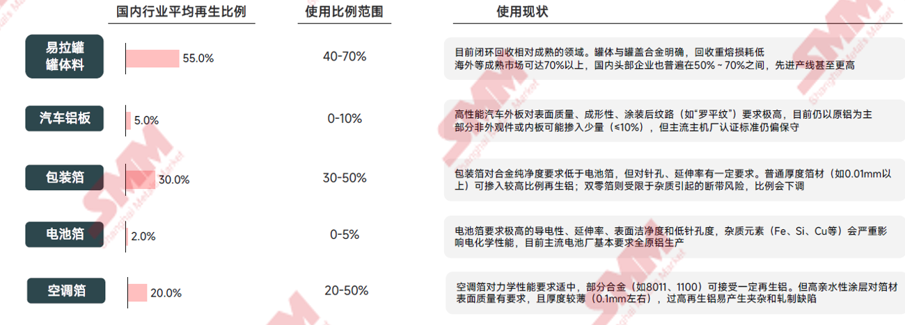 同一产品不同用途差异大:例如“包装箔”若用于高端药箔或无菌包,再生铝比例会降至10%以下;易拉罐罐体若用于特种饮料罐,也可能要求更低杂质而降低比例。
