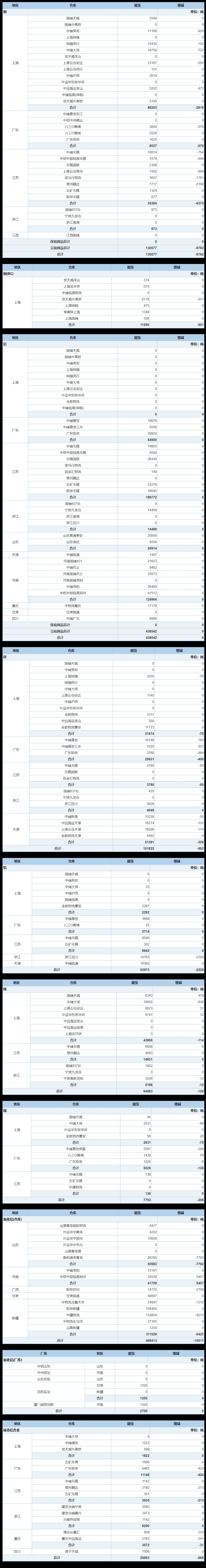 4月20日上海期货交易所金属库存日报