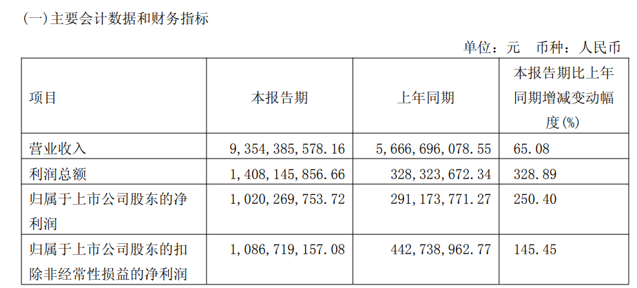 4月20日晚间,盛屯矿业发布的一季报显示:公司实现营业总收入93.54亿元,同比增长65.08%;归母净利润10.2亿元,同比增长250.40%。
