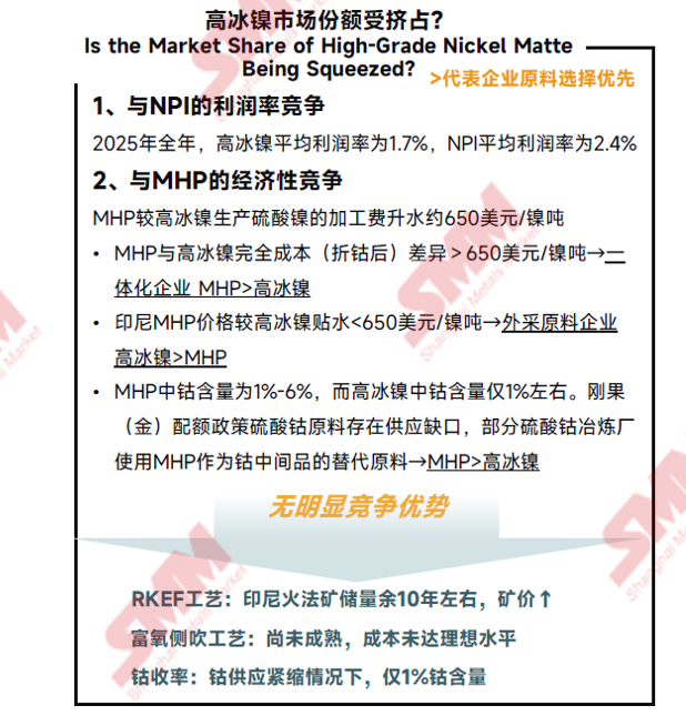 2026—2028年,钴折价幅度下滑叠加硫磺成本压力,一体化MHP生产成本预计明显上行;2028年后,火法矿成本快速上涨预计放大一体化高冰镍成本劣势。