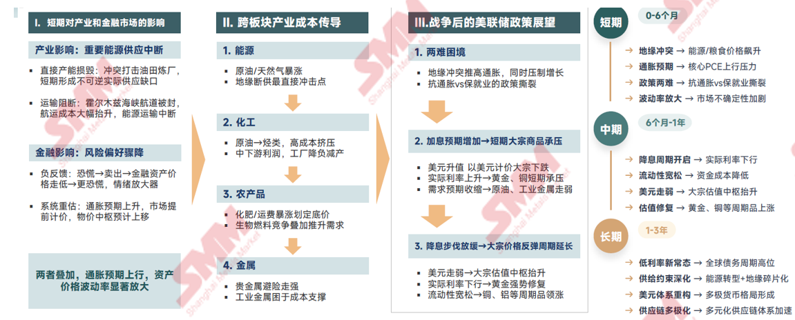 据SMM分析,地缘冲突将影响全球实体产业和金融市场。产业方面,将从能源→ 化工→农产品→金属依次价格传导。金融层面,随着中东战争冲突,石油价格上涨引发通胀预期抬头,全球主要国家和地区或将收紧货币政策。流动性面临阶段性紧张的格局。大宗商品价格波动率显著放大。从长期来看,全球正处在百年未有之大变局下,不确定性加剧,供应链体系重构,信用体系重建讲成为全球发展的主旋律。