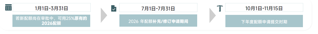 ► 审批定于2026年下半年:增补配额的申请与审批程序预计要到2026年下半年才会启动。