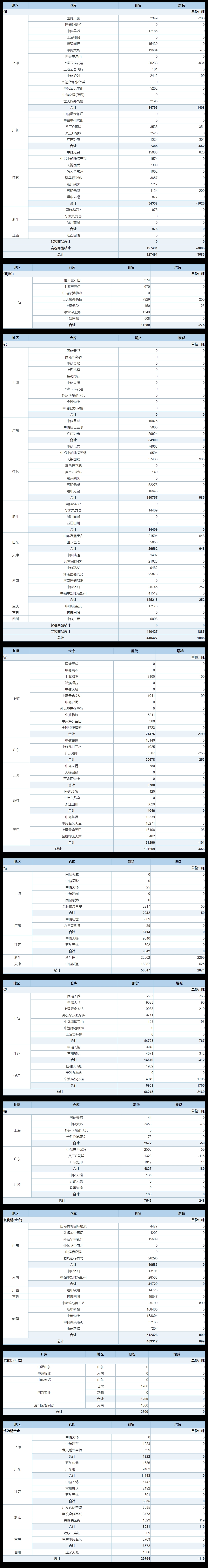 7月24日上海期货交易所金属库存日报