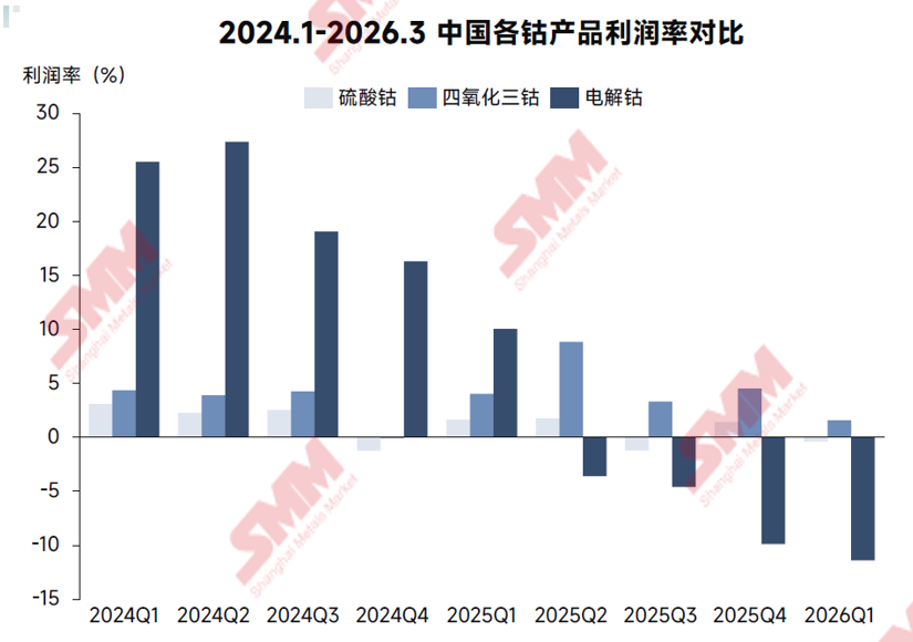 钴产品利润分化,但在原料紧张下,冶炼环节利润均持续压缩