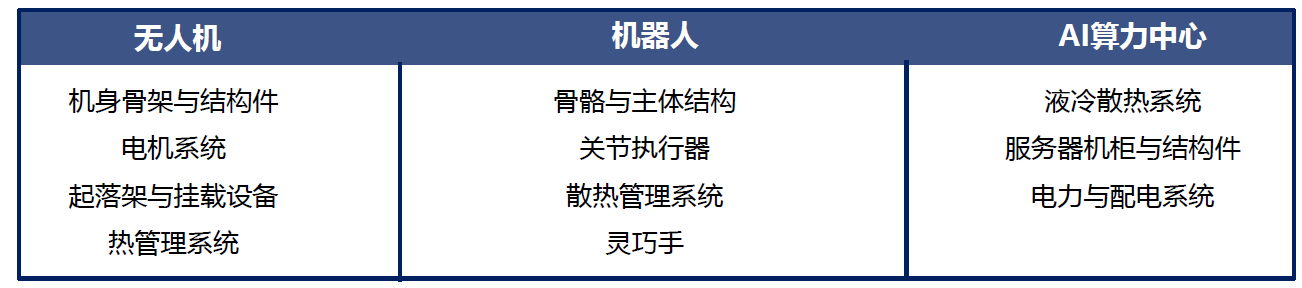 应用于电池托盘、前后地板、三电外壳、电池外壳及模组框架。