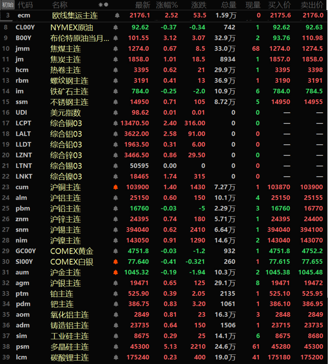 金属市场方面: