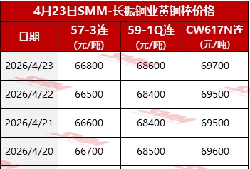【SMM价格】2026年4月23日长振黄铜棒价格
